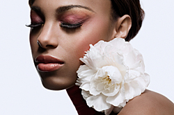 Beauty visual with ethnic model and a large peony-rose.
